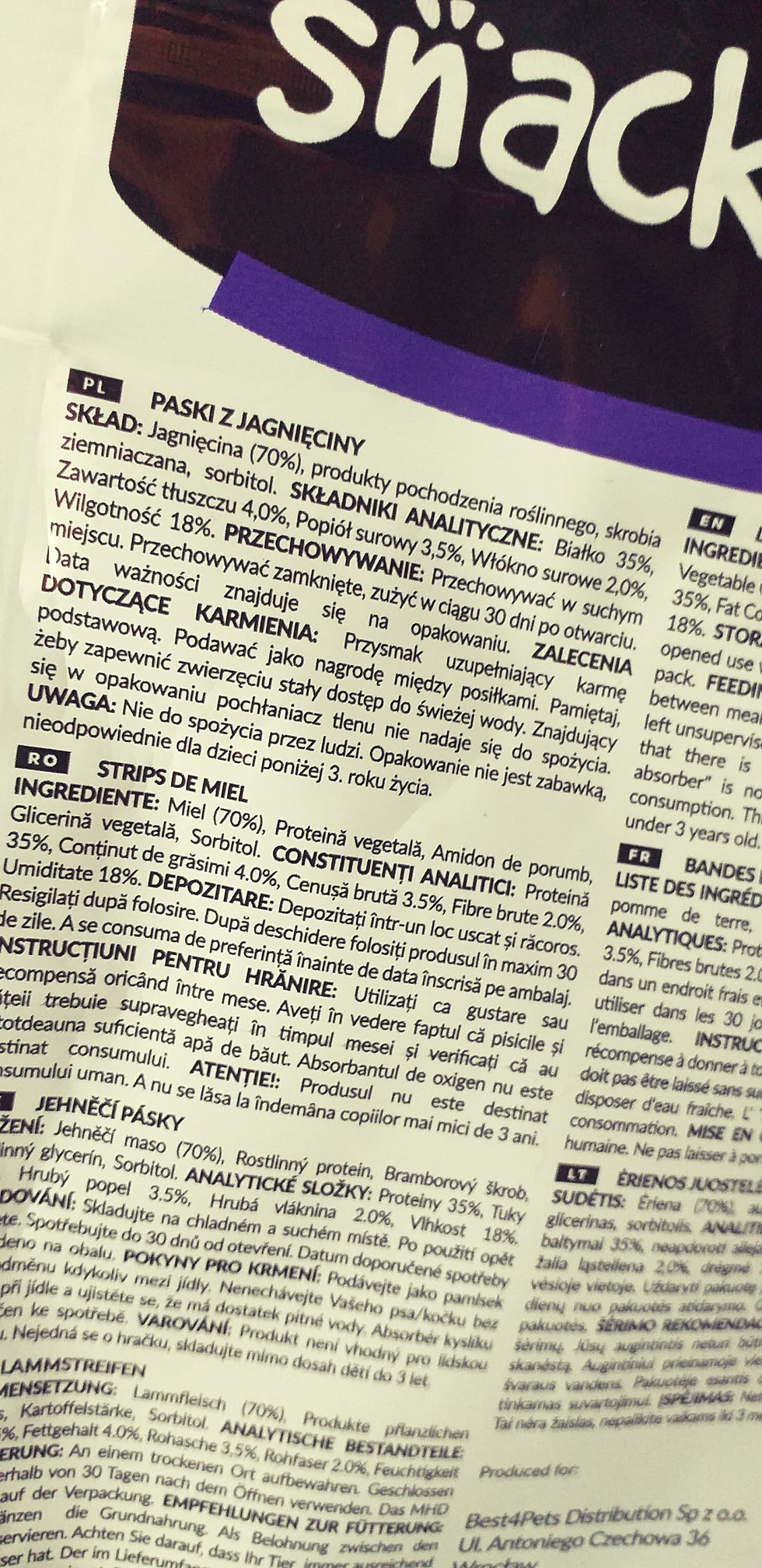 Już na początku byłam bardzo zadowolona błyskawiczną przesyłką. Dotarła do mnie już na drugi dzień od podania adresu. W paczce znajdowało się 10 różnych smaków "Snack'n'roll". Każdy z nich jest w opakowaniu z zipem co jest ważne aby nie wietrzały. Wszystkich rodzajów jest aż 14 więc jest w czym wybierać. Wszystkie mają bardzo dużą zawartość mięsa od 55% do 90% oraz formułę LOW FAT. Skład jest prosty bez żadnych udziwnień co również jest bardzo ważne.